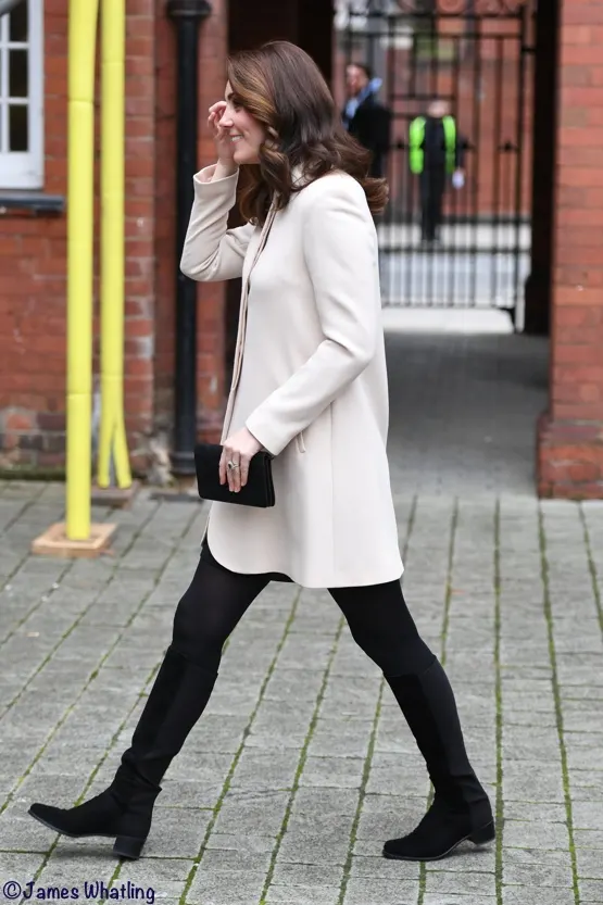 Kate chose an ensemble we’ve seen before for today’s visit to the Hornsey Road Children’s Centre in Islington, London.