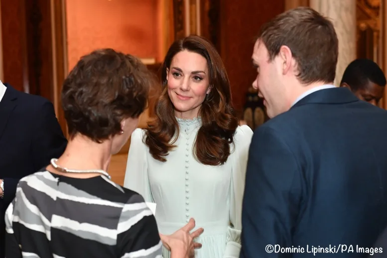 The Duchess wore a pale blue dress for today’s reception at Buckingham Palace.