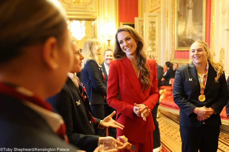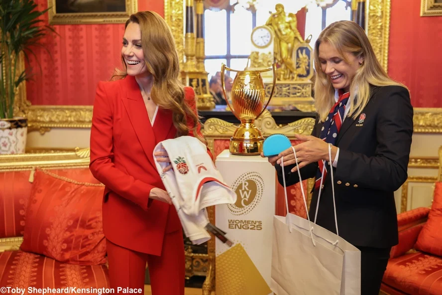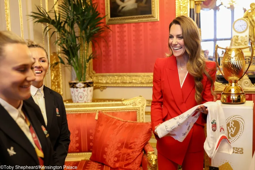 Catherine looks very appropriate for hosting the Red Roses, who did a stellar job at the Rugby World Cup Final. They were playing Canada in the Final, so my heart was with my Canadian home team, but I admit that England deserved the win that day.