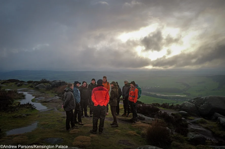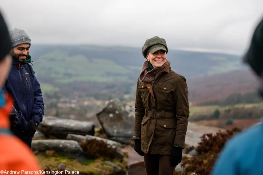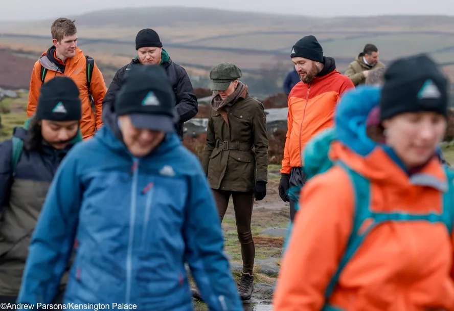 Wearing sturdy boots, gloves and a plait in her hair – which she did herself under a baker boy hat – the Princess spent 45 minutes in freezing, wet conditions walking to and from Baslow Edge in the Peak District, at around 300m altitude.