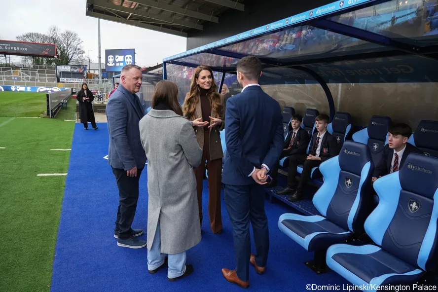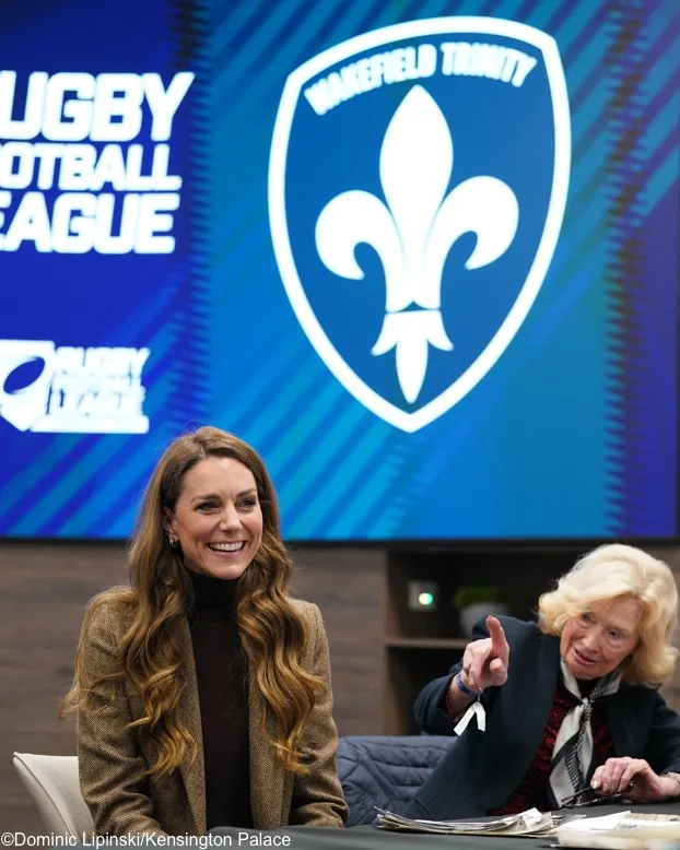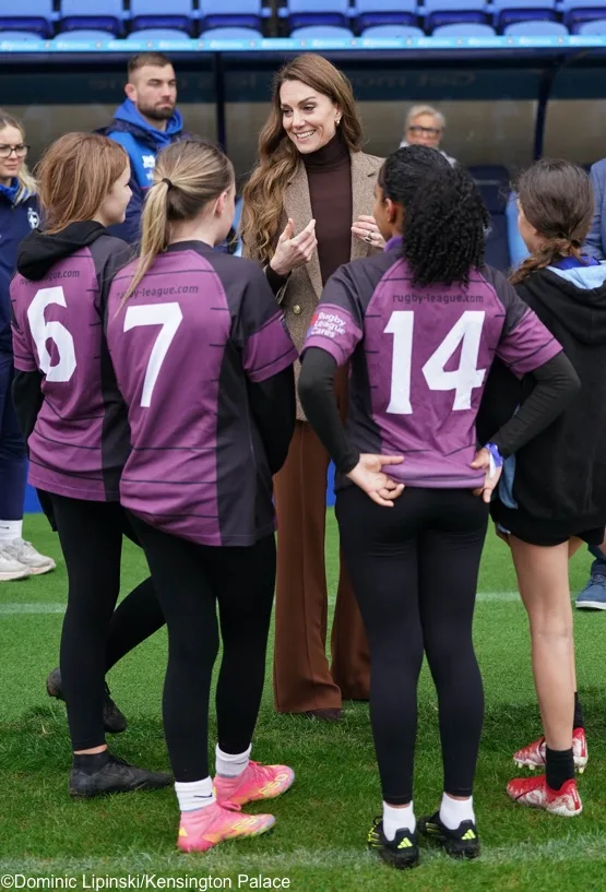 In a story on its website, the league notes the Princess then “headed to the pitch to meet with girls who were taking part in a skills session as part of the Wakefield’s Champion Schools competition.”