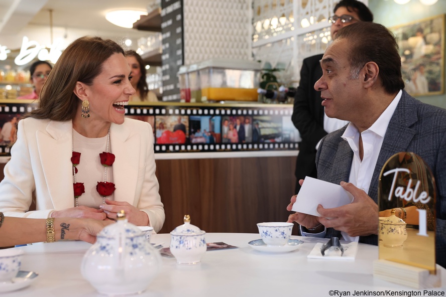 The Princess of Wales … checked out another confection, said she was “okay with spice” and took a bite as she sat with the restaurant’s owners, Dharmesh and Enna Lakhani. “Mmm. Is this coriander?” the royal remarked. “I love coriander and chili.”