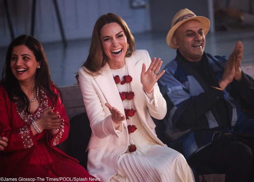 A group of Bollywood dancers performed a routine for her during which she was handed a rose to hold. She told them that her three children would ‘love’ their dance moves.