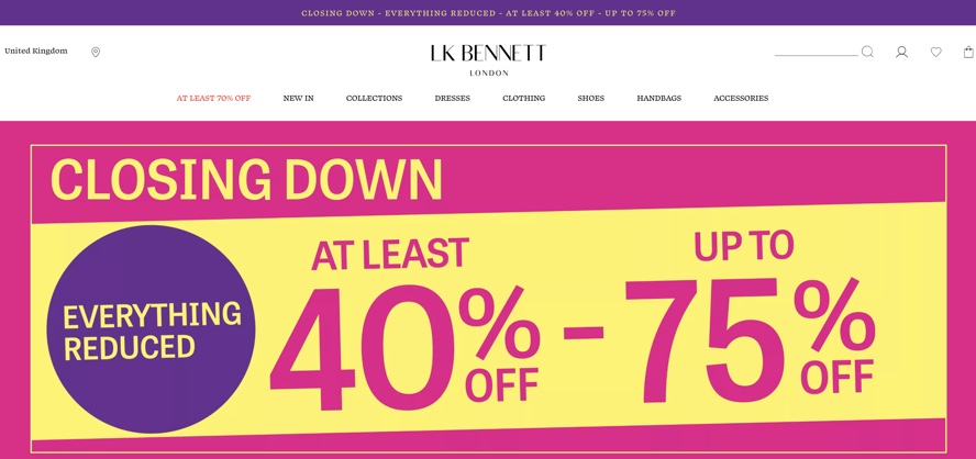 The clearance Sale follows US firm Gordon Brothers snapping up the intellectual property and assets of LK Bennett on 28 January. The deal did not include its nine stores and 13 concessions, however, as Gordon Brothers plan to transition the business to “an asset-light model”.
