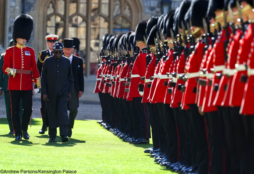 The King and President Tinubu inspect the Guard of Honour.
