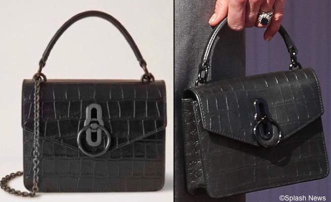 She carried her Mulberry Small Amberley Crossbody bag in the black soft-printed croc colorway.