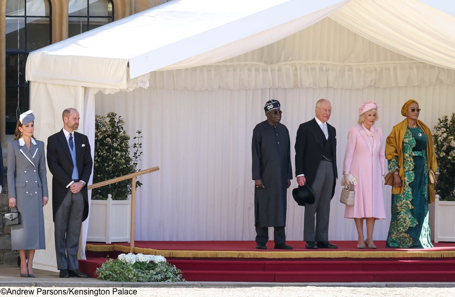 The Princess chose the style for today’s ceremonies welcoming Nigeria’s president, Bola Ahmed Tinubu, and First Lady Oluremi Tinubu, at the Fairmont Hotel Windsor.