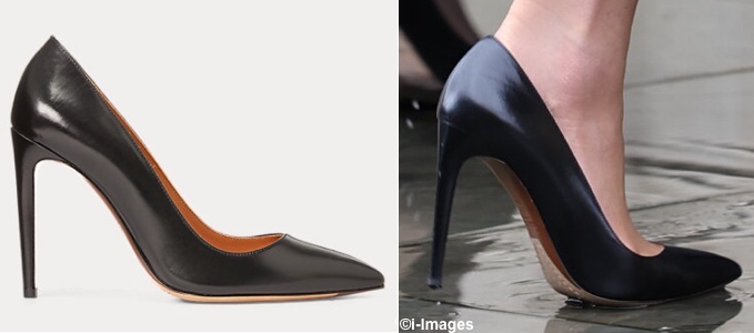 The Princess brought back her Ralph Lauren Collection Celia Pumps ($750) in black calfskin with a pointed toe and 4″ heel. It is also offered at Farfetch ($783).