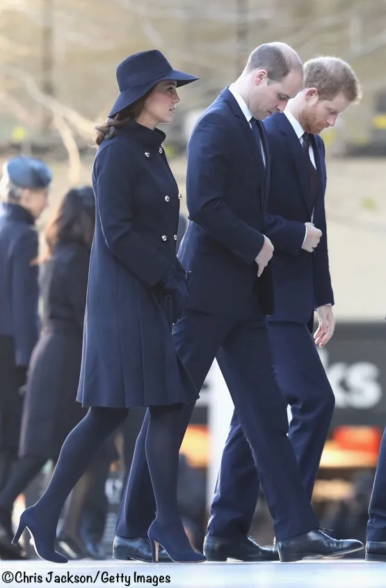 Kate, William, and Harry as they leave the somber service.