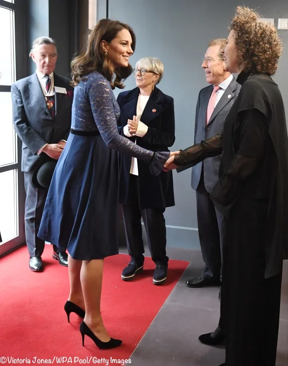 Kate was in her blue lace Séraphine Maternity dress for today’s Place2Be engagement.