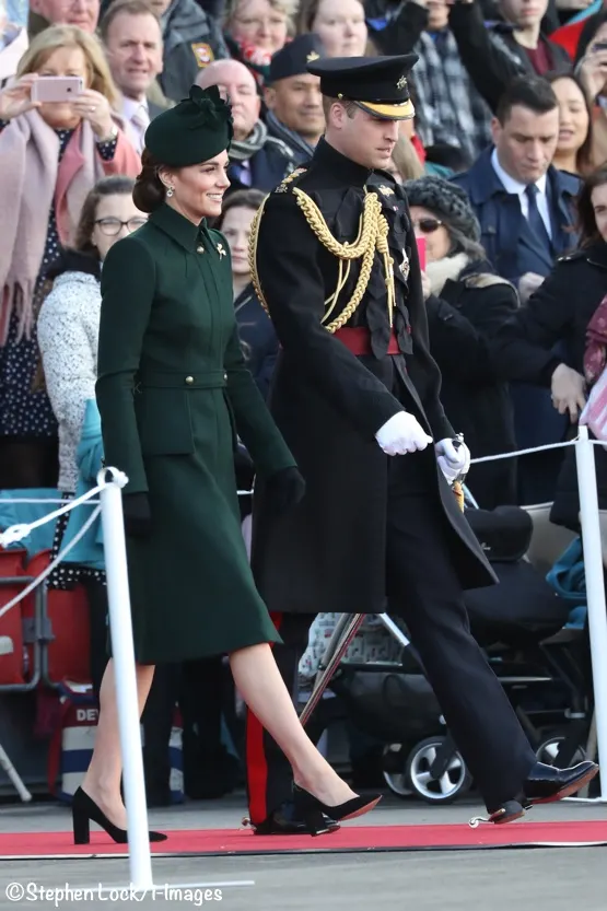 The Duchess wore a new coat by Alexander McQueen for the annual St. Patrick’s Day Parade and Shamrock Ceremony with the Irish Guards today.