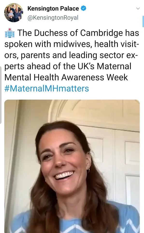 I'm wondering if there's something specific about that blue that's special? Is it close to the uniforms that the nurses or midwives wear? It's a very specific colour to choose for both video calls. I'm very glad to see the Duchess doing something we're all doing way too much of these days, Zoom calls. Kudos to the midwives who make the situation seem as normal as possible for the new mothers!
