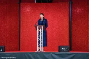 Kate Podium Speech Speaking Cruella Screening Holland Cooper Tartan Coat May 26 2021 Scotland Tour Day Three