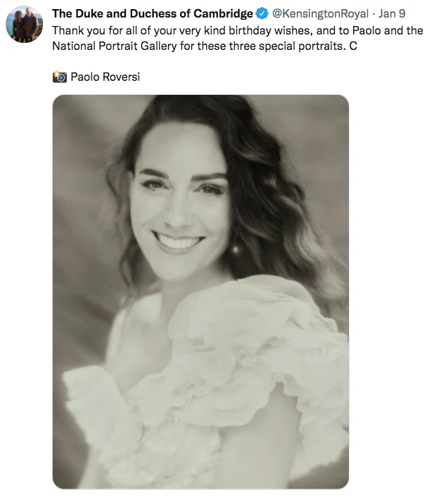 Also on social media, a darling Happy Birthday post from Mila Sneddon, the 6-year-old who was part of the Hold Still photo project the Duchess spearheaded, someone with whom the Duchess has stayed in touch, seeing her most recently at the Christmas Carol concert taped in December.