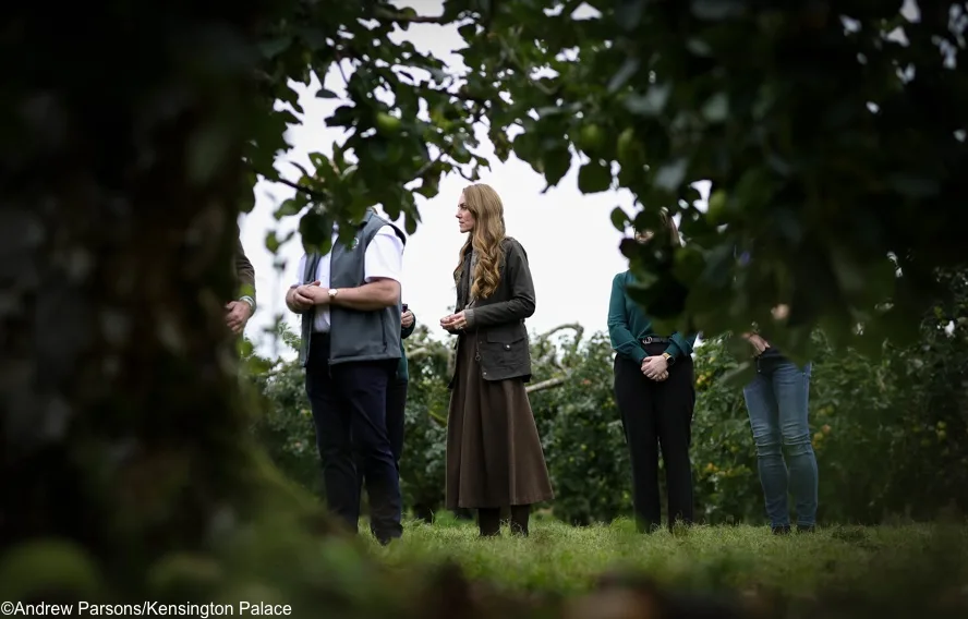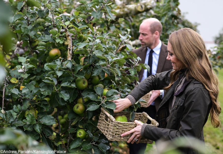 The couple also helped out with the apple harvest, picking Golden Delicious and Bramley apple varieties….As they began peeling their baskets of apples William turned to his wife who appeared to be lagging behind and joked: “Do keep up.”
