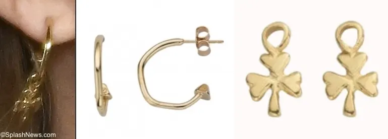 She wore her Daniella Draper Mini Cupid Hoops With Baby Shamrock Charms ($295) in gold.