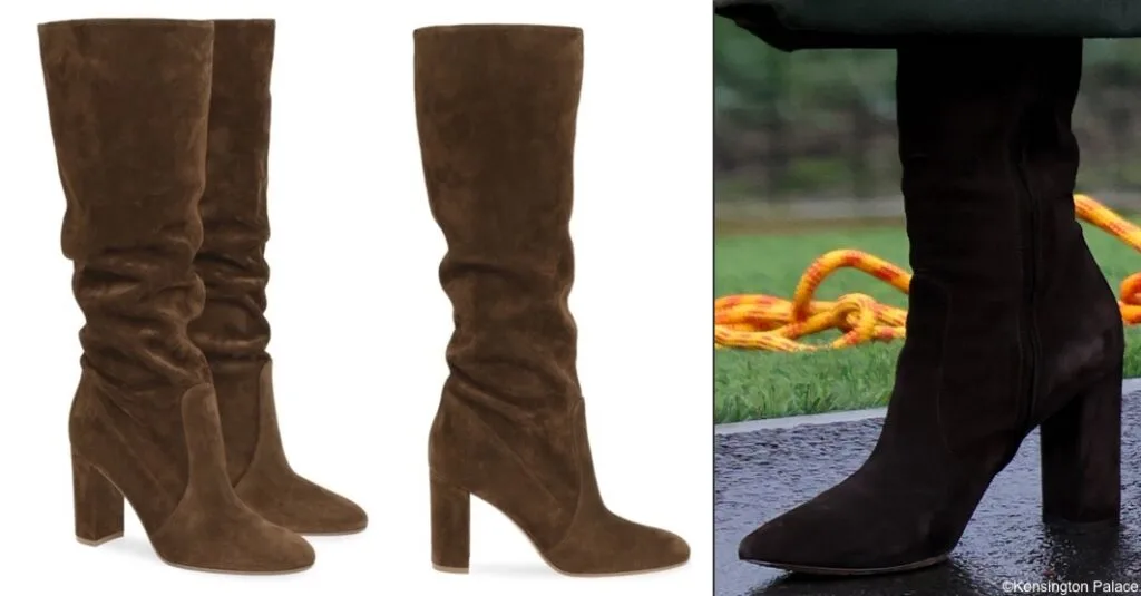 And her Gianvito Rossi bespoke boots, a design closely resembling the brand’s Glen Boots, but with a more pointed toe.