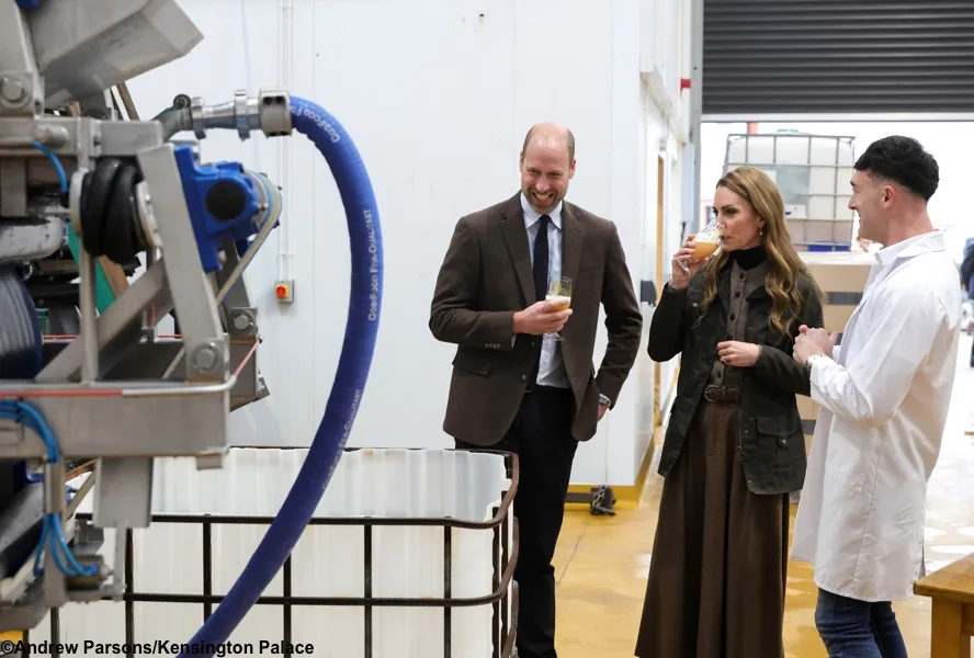 William and Kate viewed the production facilities and drank apple juice pressed just seconds earlier.