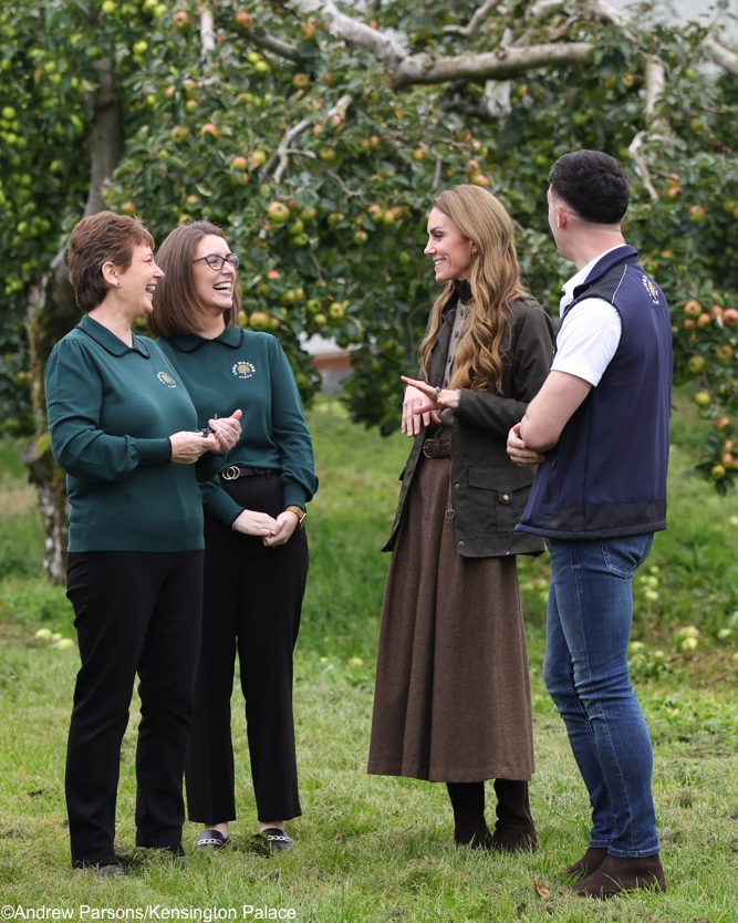 Shown the farm’s apple pressing machine, the Princess said: “We tried this at home with a hand press. It was quite good fun with the children. It was very messy.”