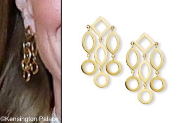 And her Cassandra Goad Temple of Heaven Earrings ($5201) in yellow gold.