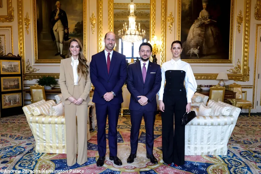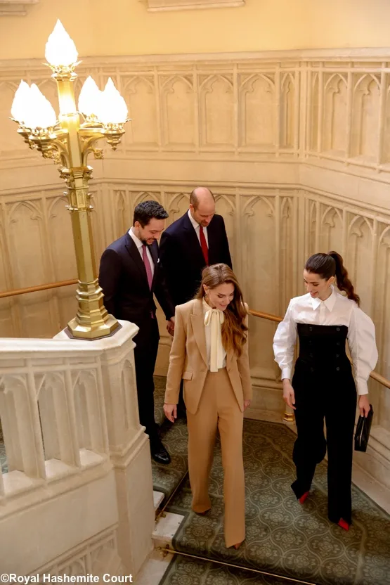 The Princess of Wales chose Roland Mouret separates today as she joined the Prince of Wales at an audience for Jordan’s Crown Prince Al Hussein bin Abdullah II and Princess Rajwa Al Hussein.