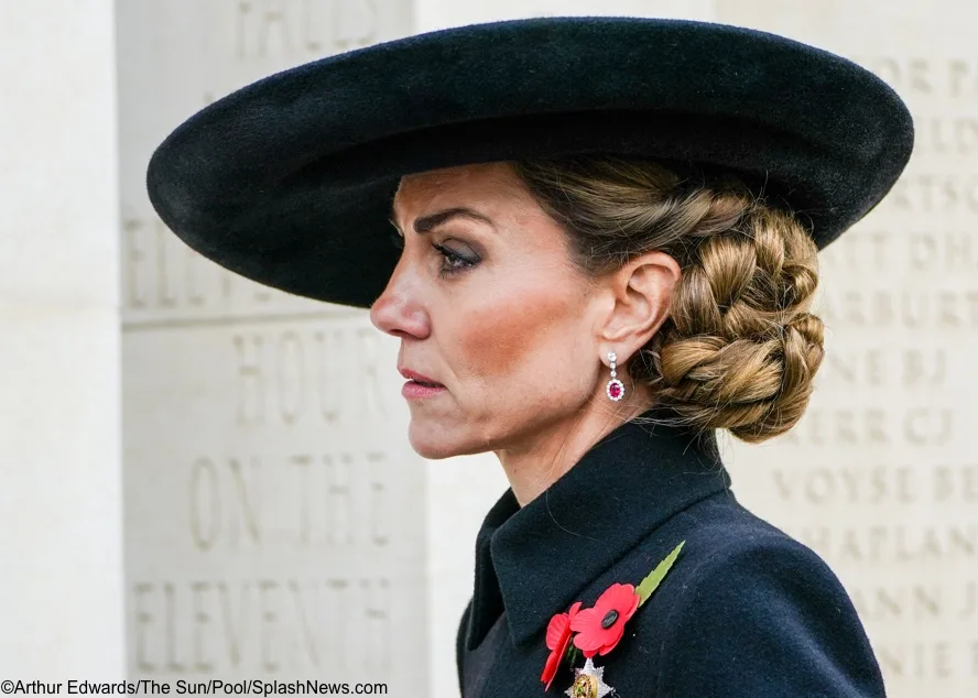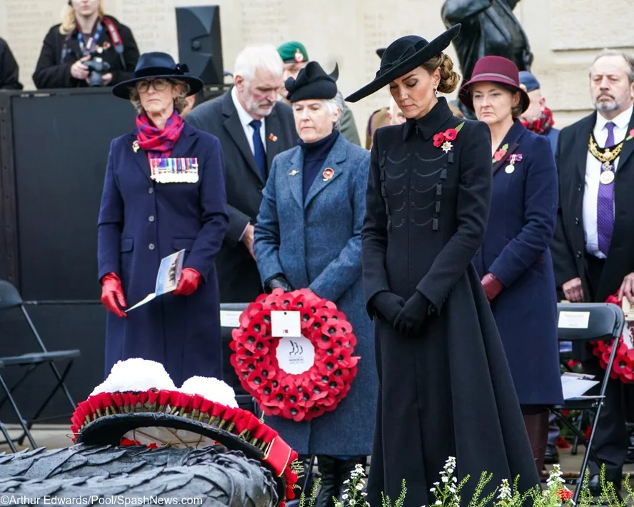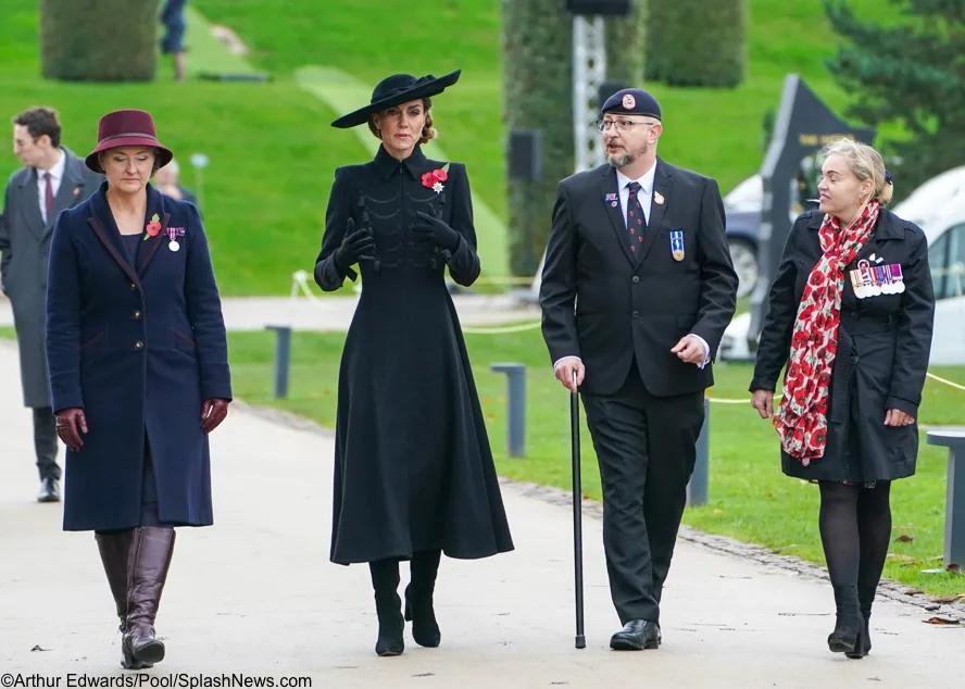The Princess of Wales reprised a Catherine Walker coat for today’s Armistice Day Service of Remembrance at the National Memorial Arboretum.