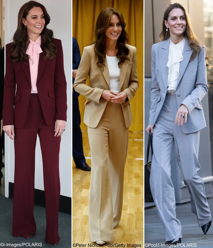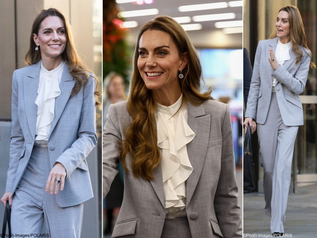 The Princess now owns the styles in three colorways: the maroon, first worn in Boston in 2022; the sand color, worn in September 2023; and today’s light grey.