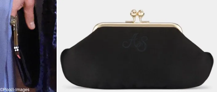 The Princess brought back her Rania 105 Embellished Pumps ($2695) in silver by Gianvito Rossi. The heels are crafted in sheer silk organza with suede detailing and hand-embellished with 4500 shimmering crystals. First worn during the 2022 Caribbean tour, they are a point-toe style with a 4.1″ heel.
