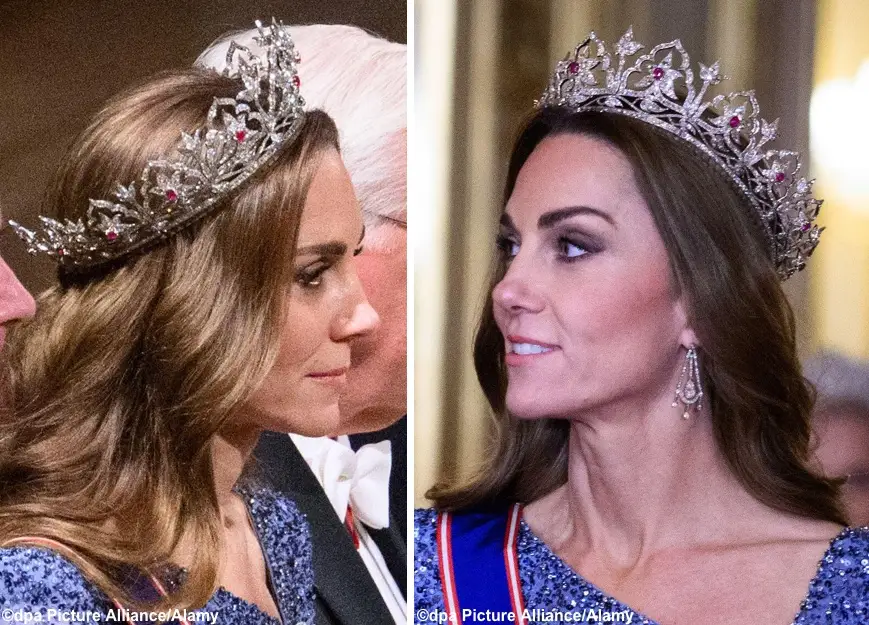 The Princess of Wales debuted a new gown at tonight’s state dinner, but the real news was the tiara she chose to wear with her ensemble.
