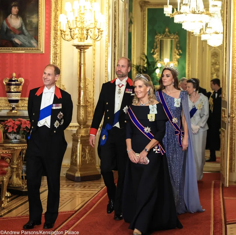 As has become customary, Kensington Palace released a posed photo just as the dinner was getting underway.