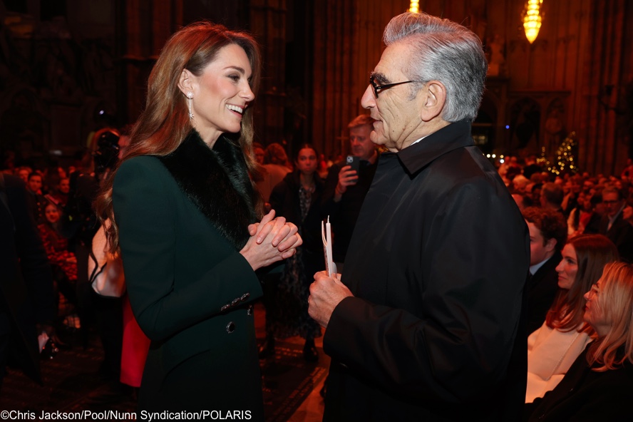 IMO, Kate herself always looks extra radiant at her annual Christmas event! I love her make up, earrings, bouncy hair and cheerful smile. I know it’s Christmas and that Kate is simply dressing festively, but I don’t love this look. IMO, that skirt has way too much going on. I have nothing nice to say about the skirt, lol. The coat is a lovely color, however I would’ve preferred it without the fur collar. I loved when Kate wore all white to this event a few years back. She looked so chic and angelic in the crisp winter white outfit. It’s one of my all time favorite Kate looks.