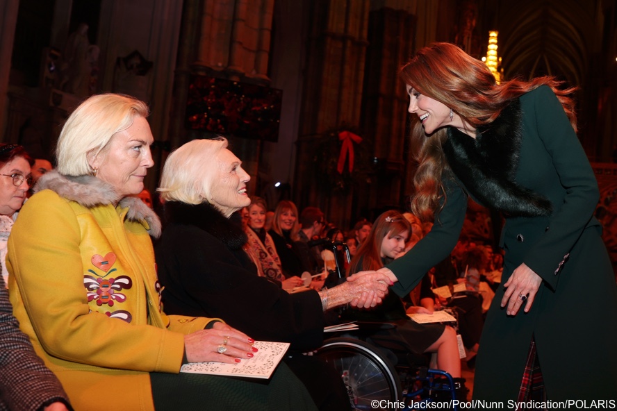 Here you see the Princess with British singer Katie Melua (R). The Times reports, “…Katie Melua, the singer who was away from public life for several years due to mental health challenges, performed the song White Christmas…”