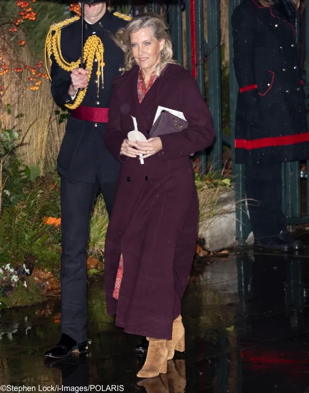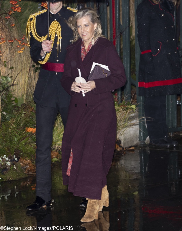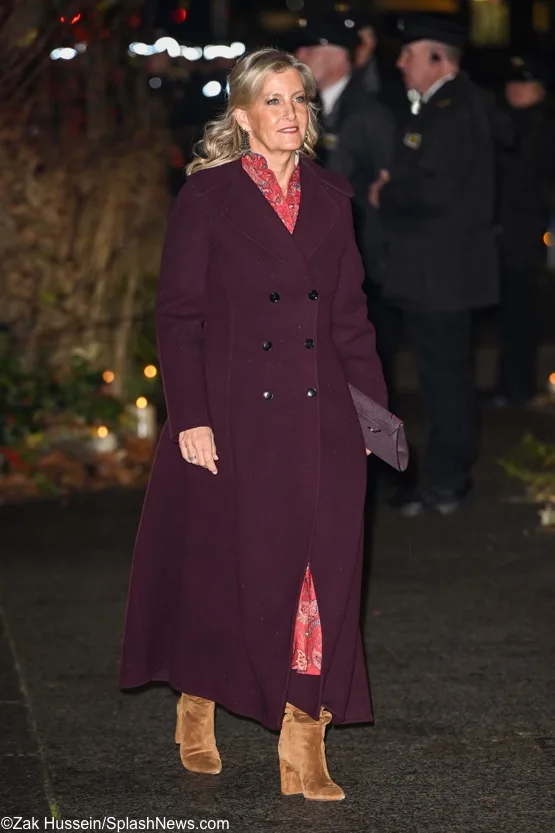 Now, for a brief look at what some of the royals were wearing tonight, beginning with the Duchess of Edinburgh. She wore an Alaïa coat, Gianvito Rossi Piper 85 boots, and carried a Sophie Habsburg clutch.