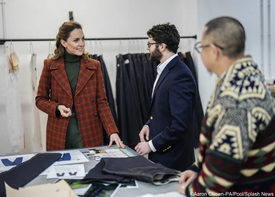 Some of you may remember the brand name from when the Duchess of Sussex wore a pair of their jeans during a 2018 visit to Cardiff. Below, the Princess meets with the Hiut design team.