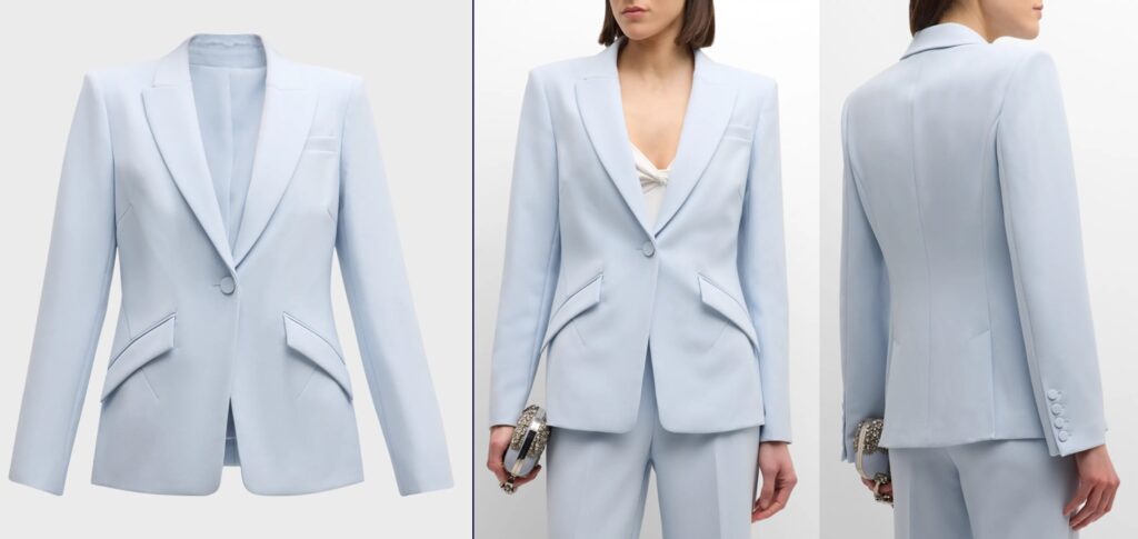 This design is made from 100% wool and features the same details, including vertical seams, a self-covered button, the four buttons at the cuff, lapels, and a chest pocket. Thank you to Kate Middleton Style and Middleton Maven for their work on this, as well as to the WKW Facebook friend who pointed out the discrepancy earlier this evening!