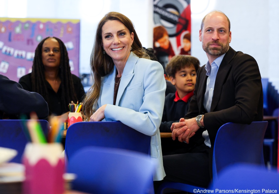 Returning to today’s engagement, the couple spent time with primary school students taking part in free Into University workshops. Into University notes on its social media that at the time of the 2011 royal wedding, “we operated six centres in London. Today, we support over 60,000 young people each year across 46 centres in England and Scotland.”